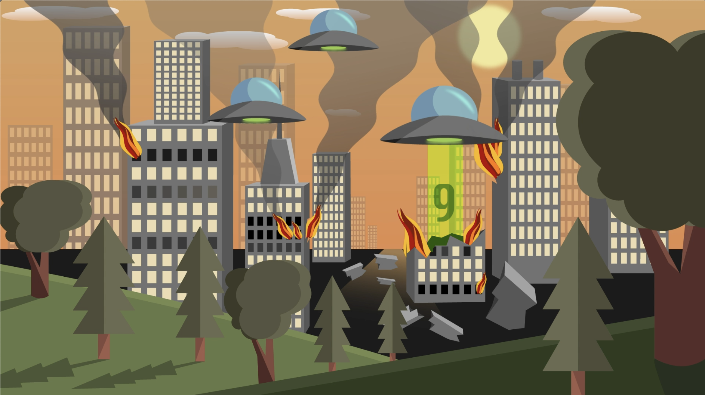 Aliens. Nature. City crumbling. A quick animation on a film leader.