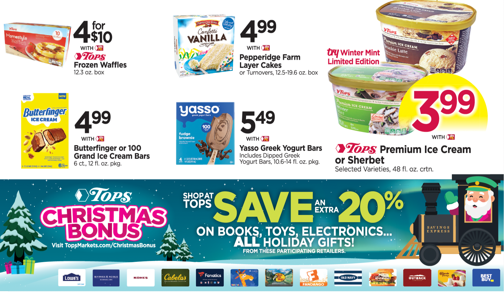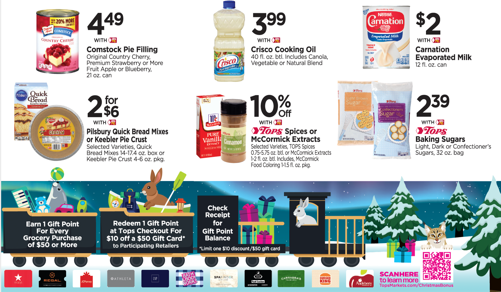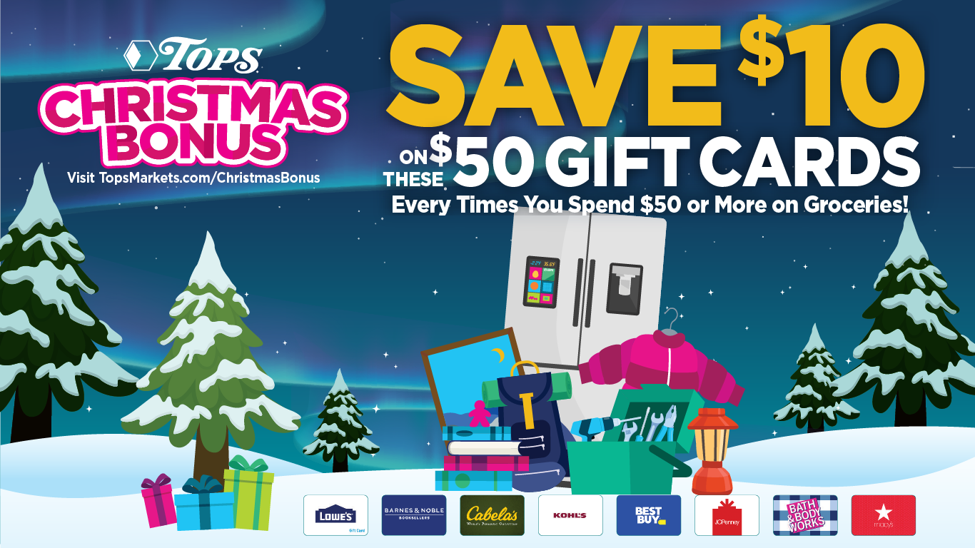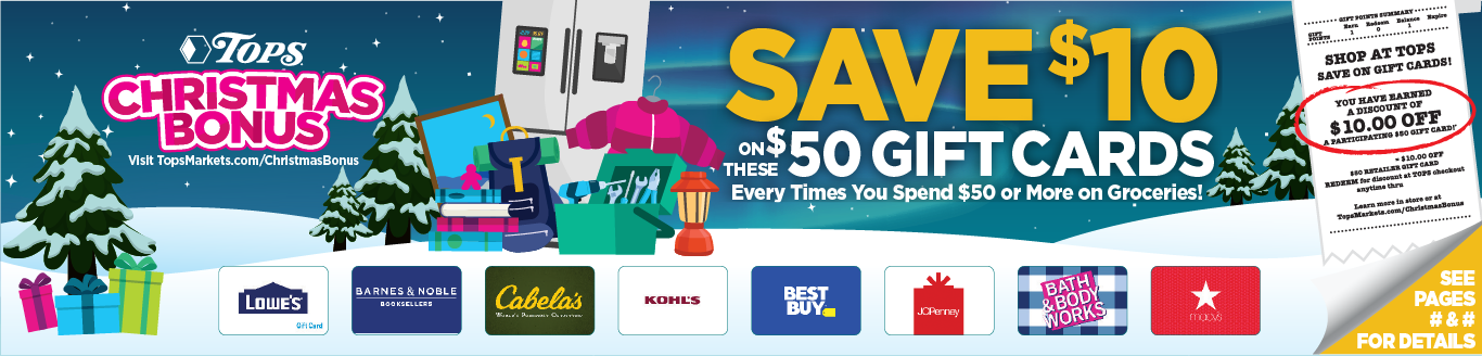 This was for the Tops Christmas Bonus campaign that they run every year throughout November and December. This campaign is to inform customers of the deals they offer to shoppers when they spend a specific amount of money at any of their stores.